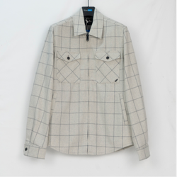 Camisa de Hombre de Alta Calidad en Oferta, Gris a Cuadros, Mezcla de Lana, Cuello Camisero, Cierre de Cremallera